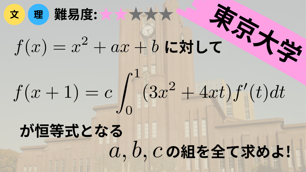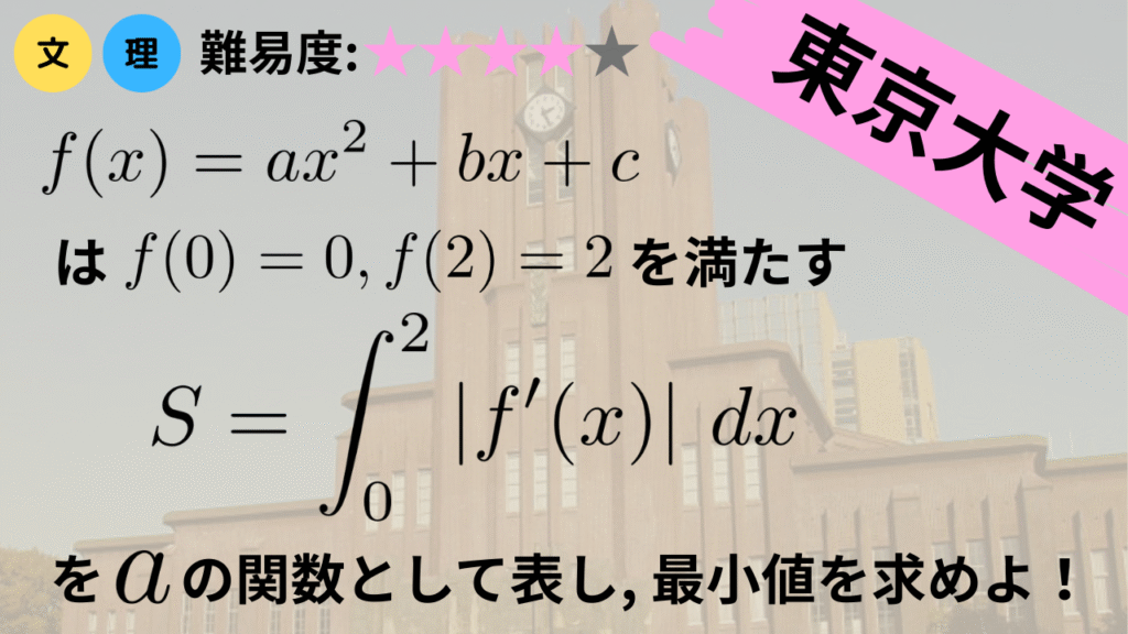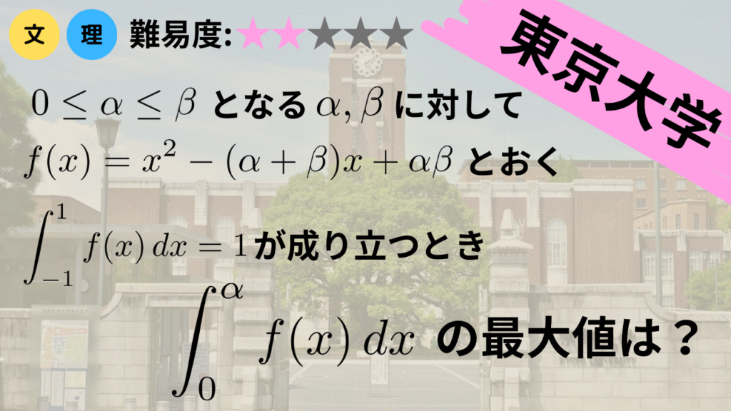 【東京大学入試】定積分の条件から最大値を求める問題(2008)