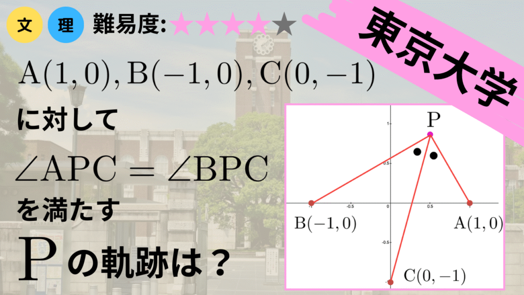 【東京大学入試】∠APC=∠BPCを満たす点Pの軌跡を求めよ!(2008)