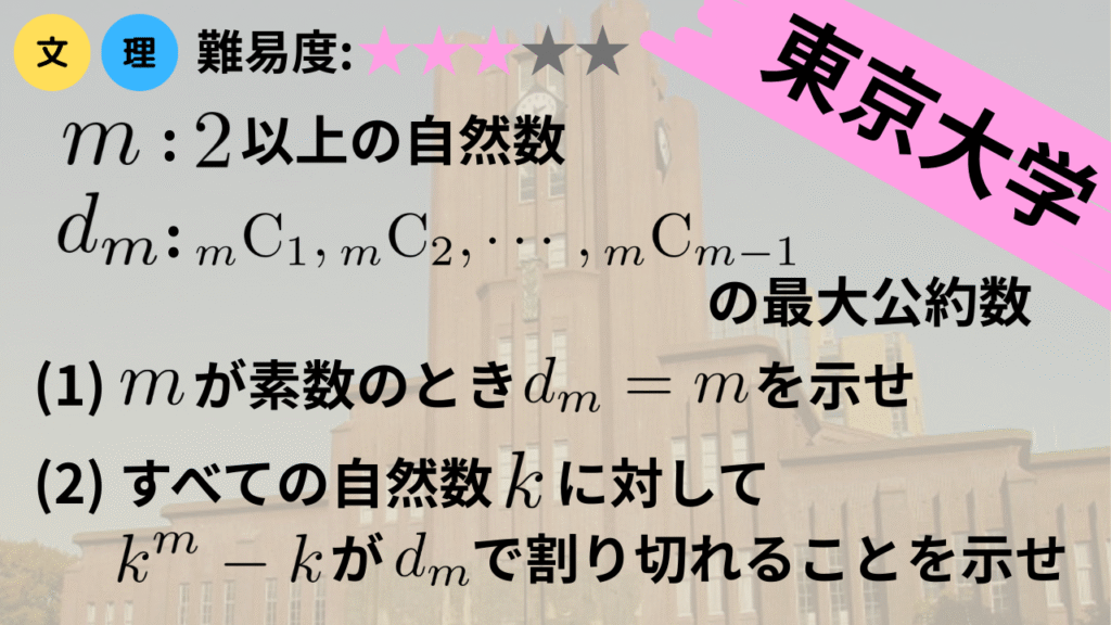 【東京大学入試】二項係数の最大公約数と帰納法(2009)
