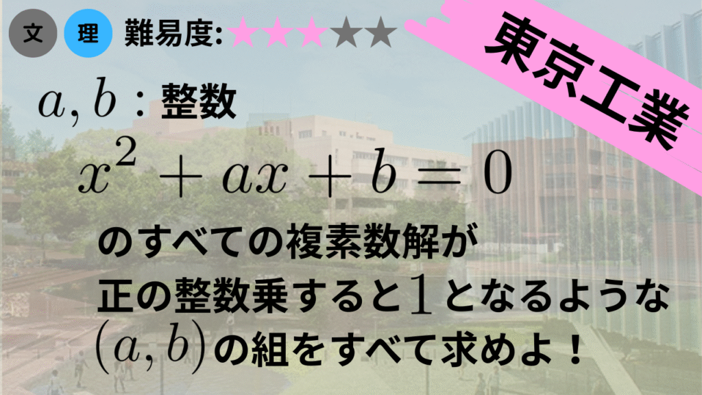 【東京工業大学入試】解が1の冪乗根となる整数係数2次方程式(2024)