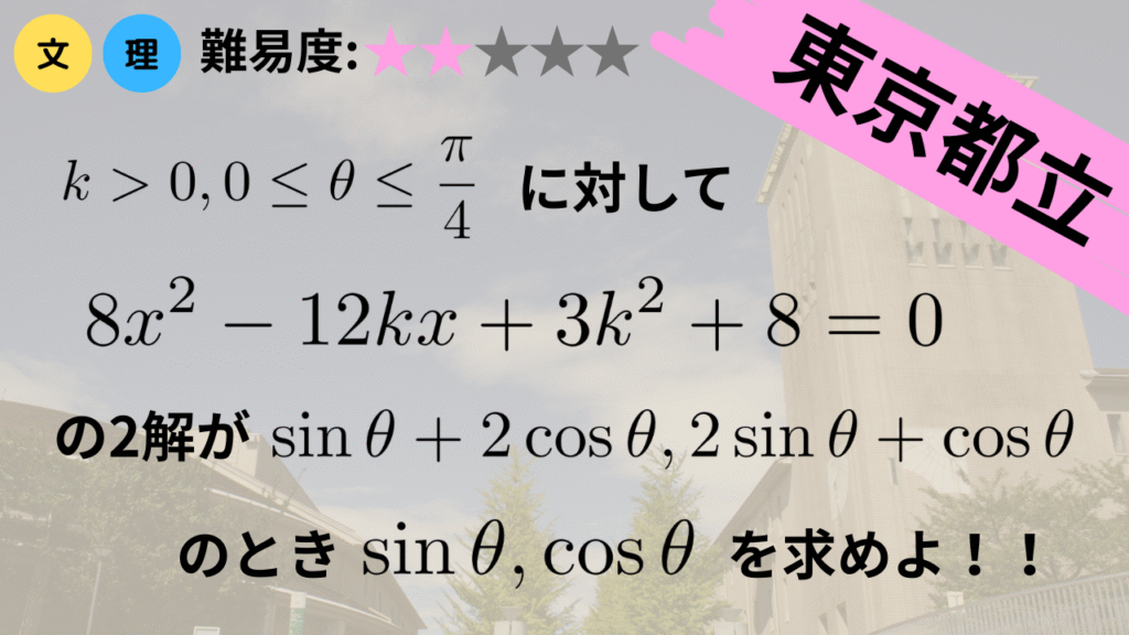 【東京都立大学入試】二次方程式の解が三角比の和になる問題(2017)