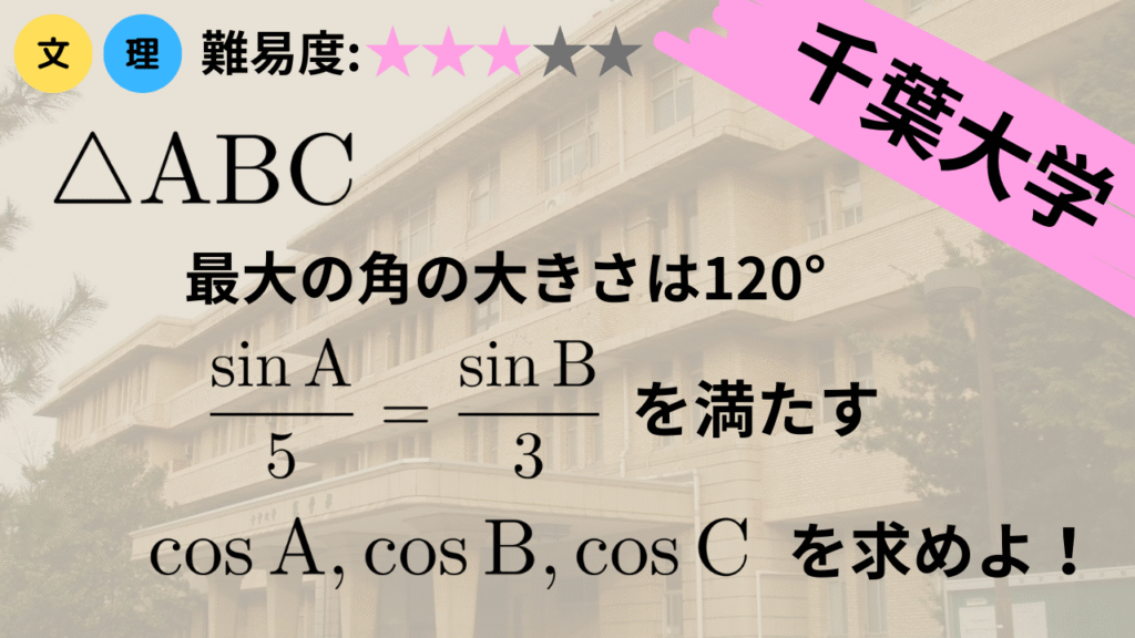 【千葉大学入試】最大角120°の三角形で余弦の値を求める(2014)