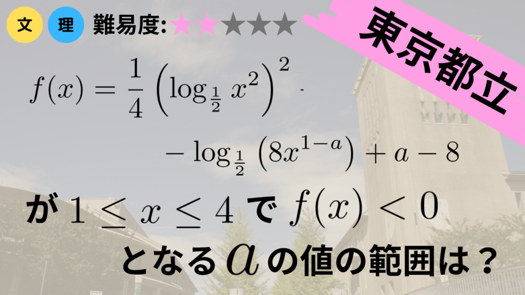 【東京都立大学入試】対数の入った関数がある範囲で負になる条件(2020)