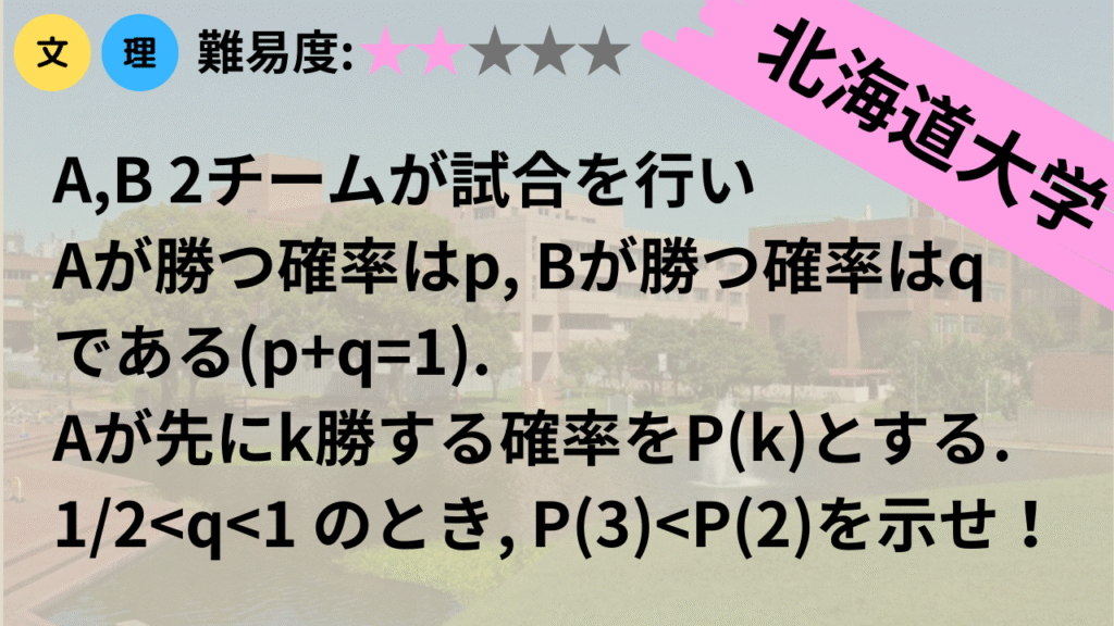 【北海道大学入試】先取勝負の勝率:2本先取と3本先取(2012)